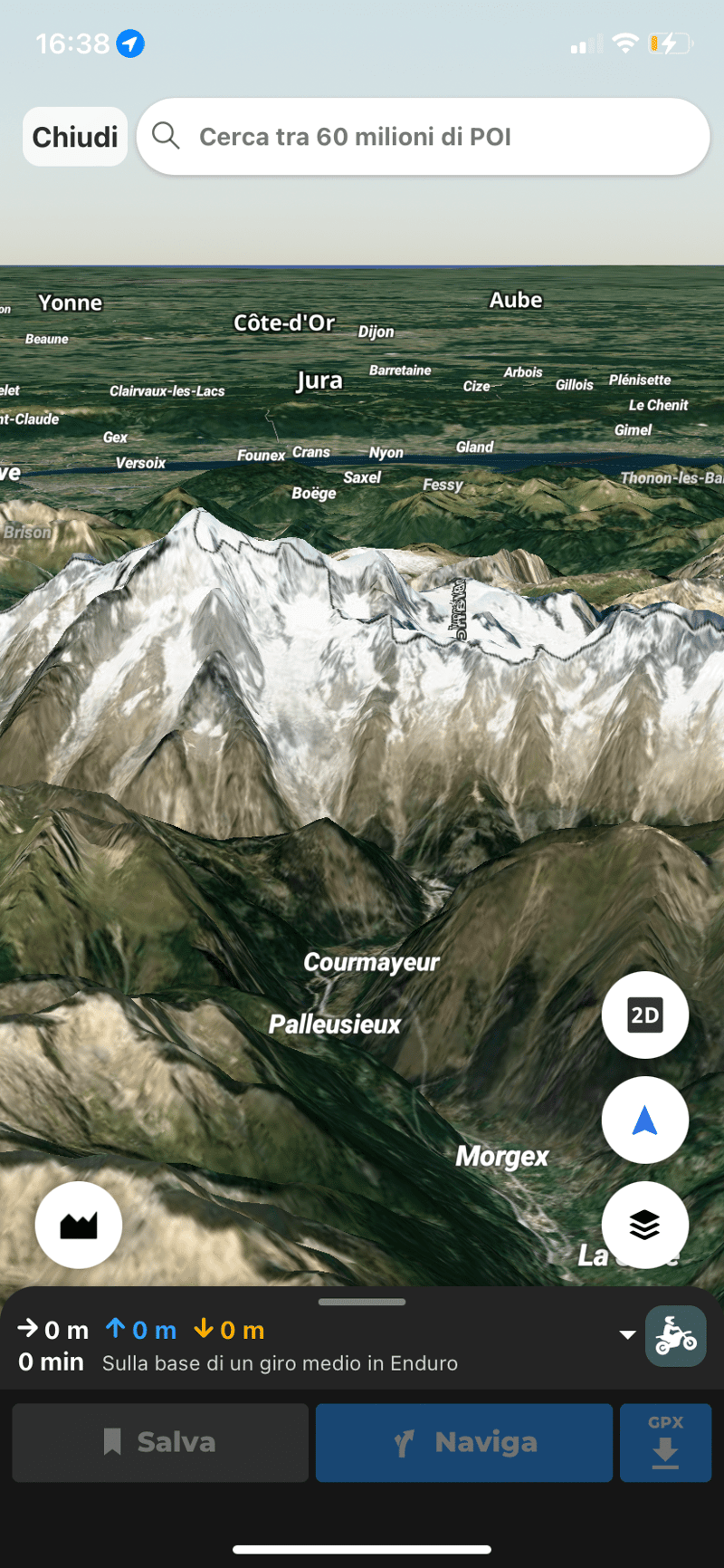 Ogni mappa può essere visualizzata in 3D per darti la visuale più accurata possibile sui percorsi che vuoi affrontare